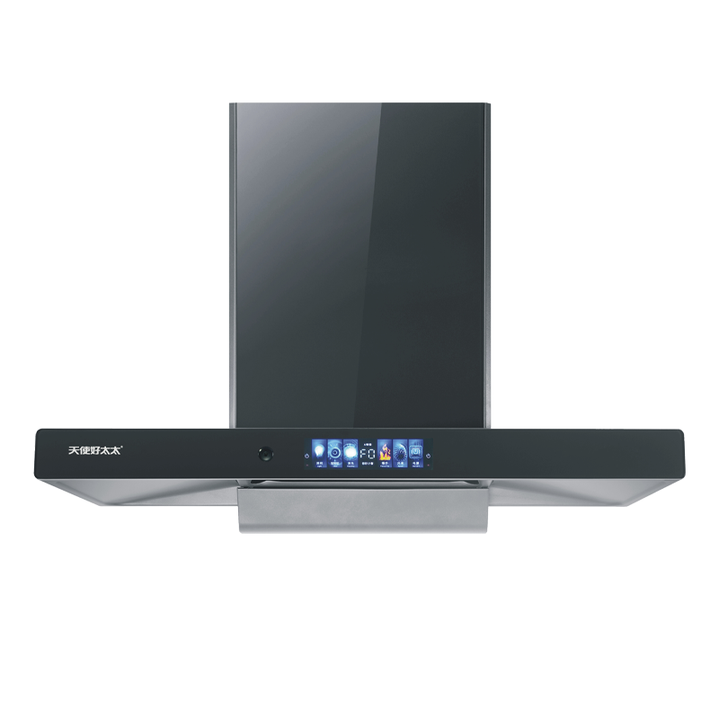 開關:六位彩屏語音小智開關,三速體感;電機:32#全封電機;箱體:星耀灰納米噴涂;圍板:黑色鋼化玻璃;功能:熱除油功能,銫2米加密卡扣煙管